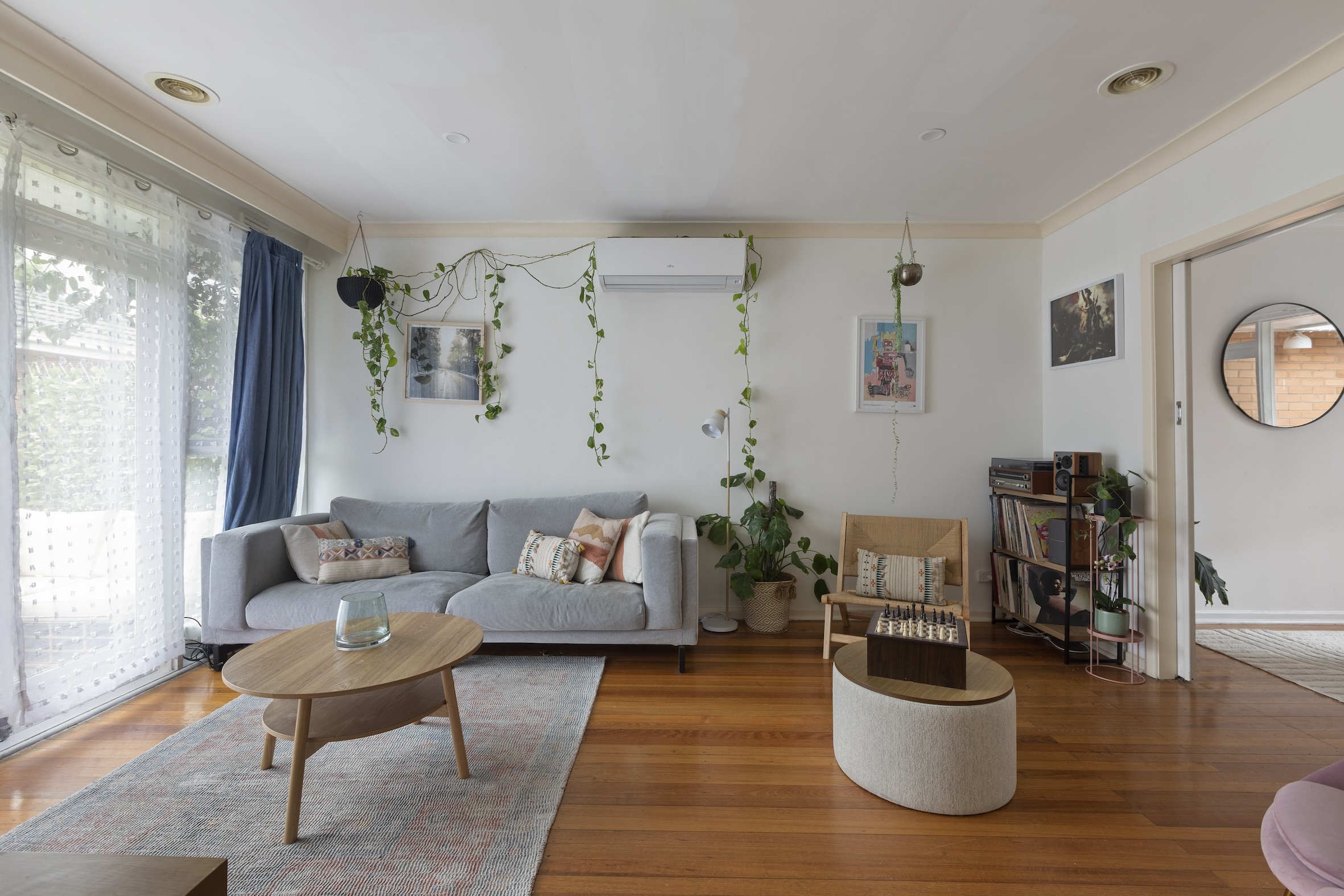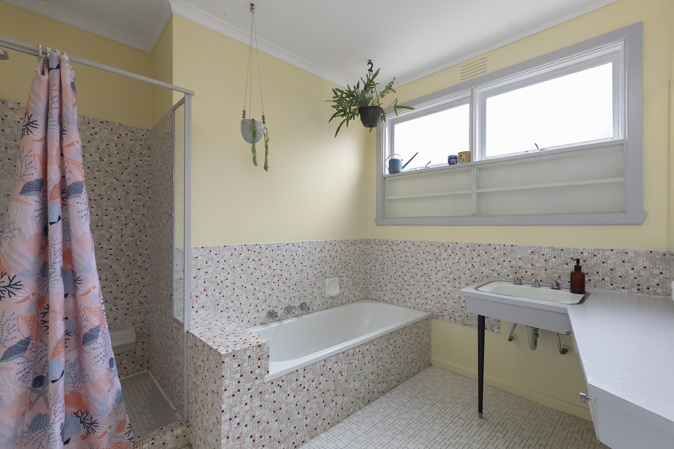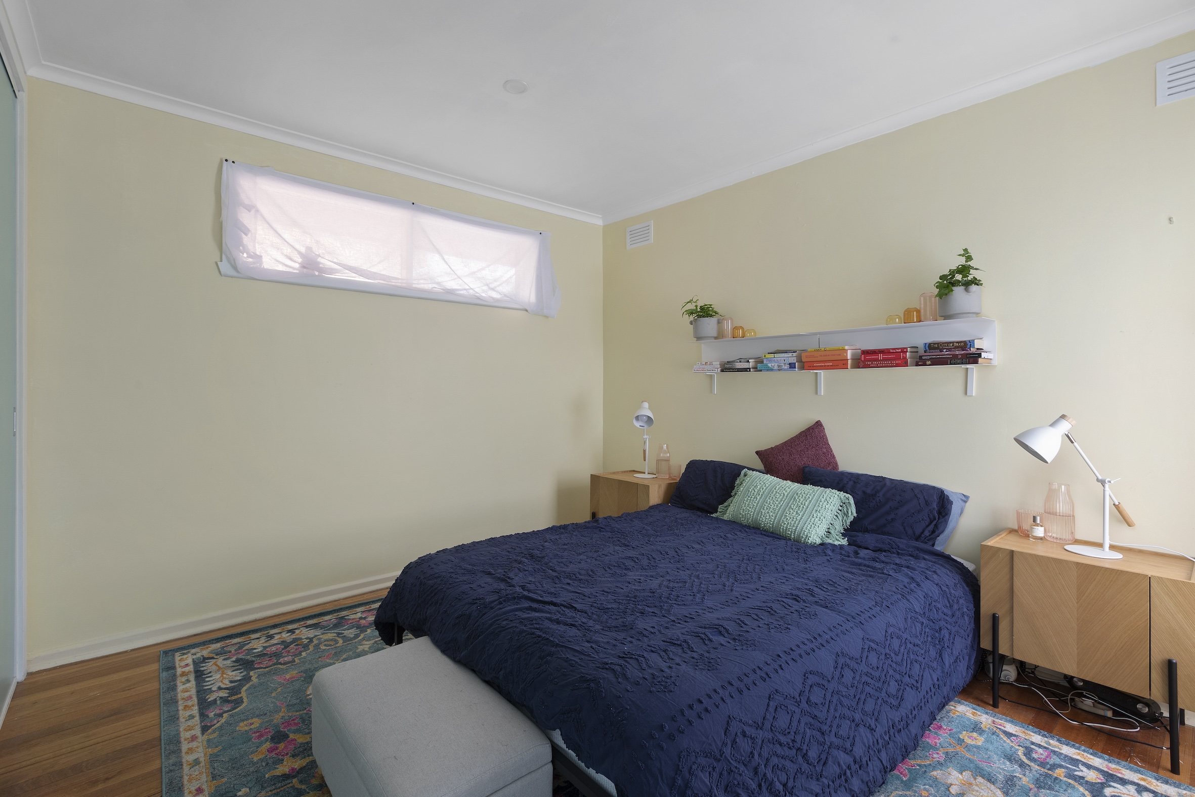 Both bedrooms are well-proportioned and include a generous front primary bedroom, both benefiting from fitted robes and sharing a vintage yet pristine central bathroom with a separate powder room.