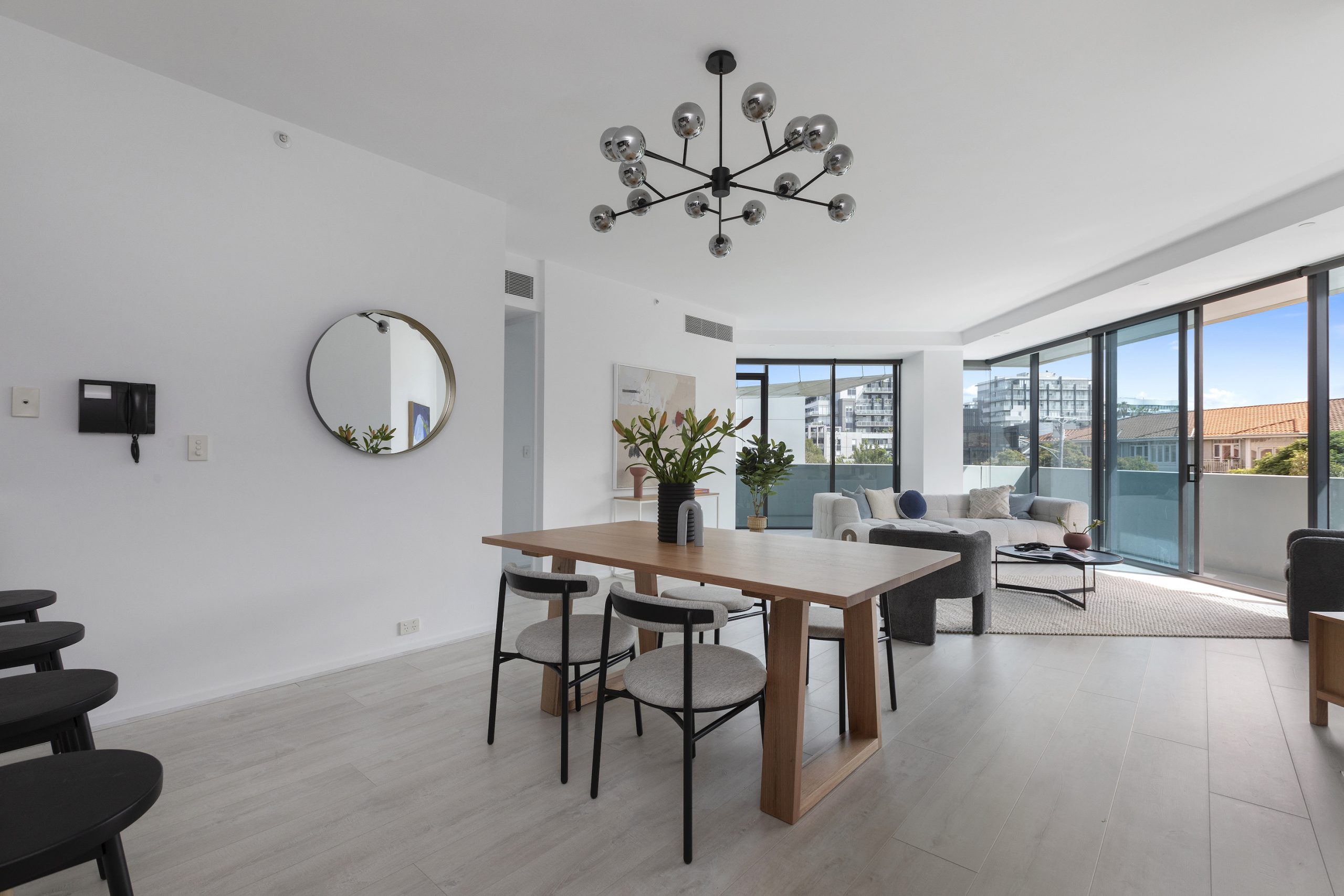 The generous open plan living zone will cater to all given its spacious nature, and boasts a full wraparound terrace, which compliments the luxe living area with an abundance of windows.